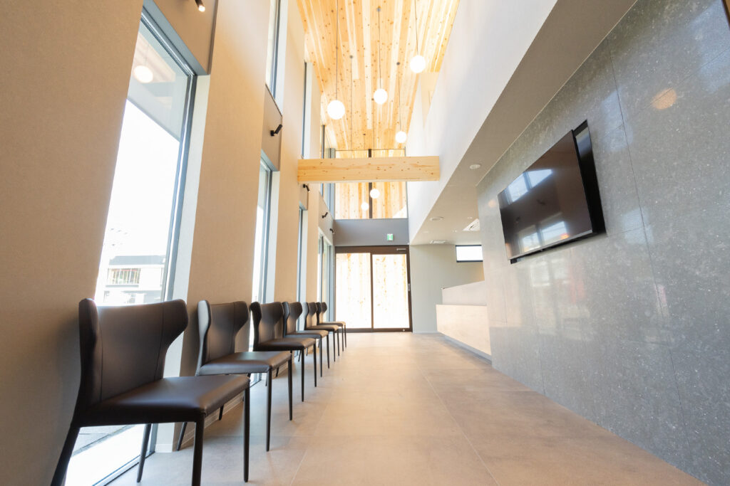 心地よい空間を提供するために、自然の素材を使ったインテリア、また緊張を和らげるための2階に中庭を設け、患者さまが安心して来られるように工夫いたします。