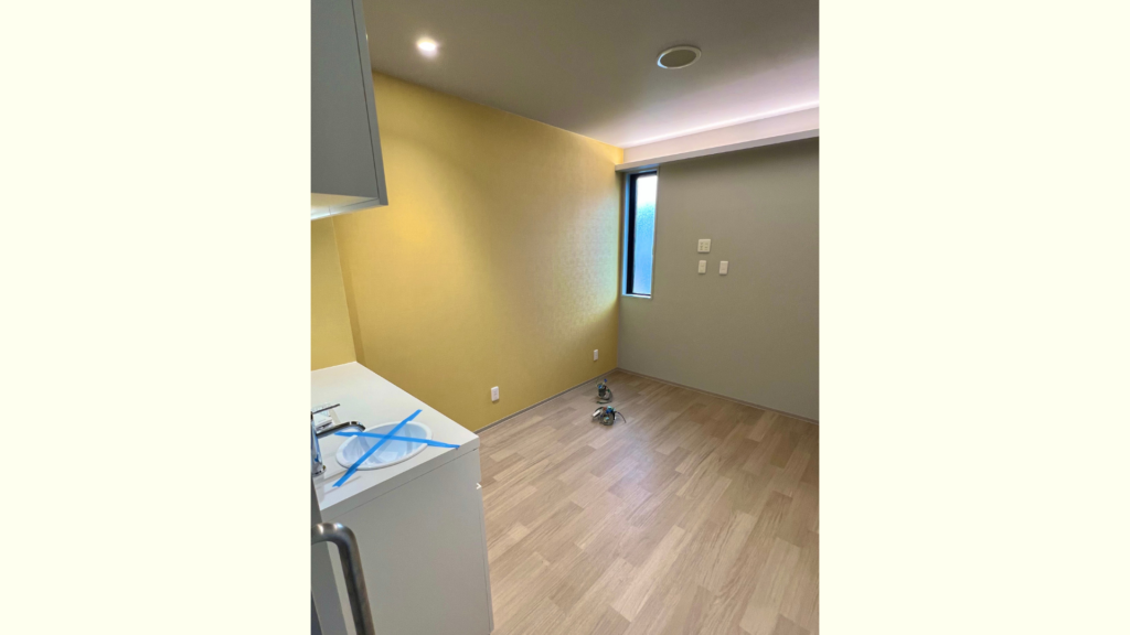 新しい診療室にたんぽぽ色の壁紙が届きました