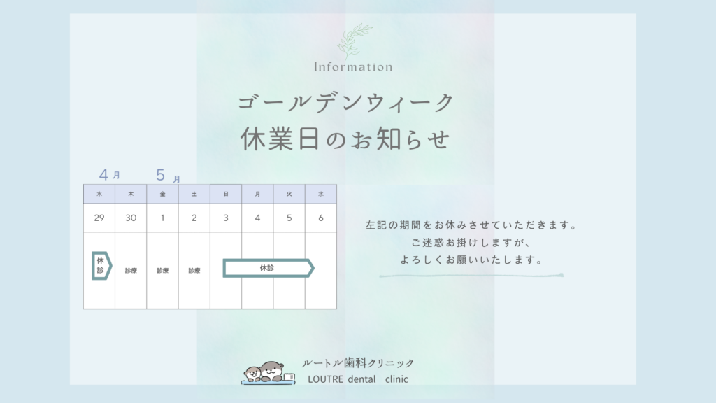 ゴールデンウィーク期間の休診日についてのお知らせです。